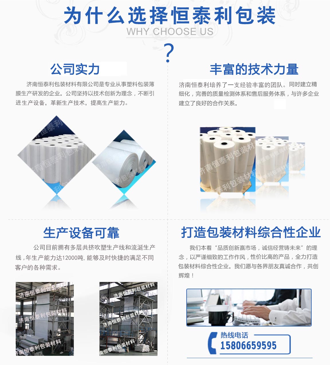 濟(jì)南恒泰利包裝材料有限公司位于濟(jì)南市市中區(qū),是從事塑料包裝薄膜生產(chǎn)研發(fā)的企業(yè)。公司成立十幾年以來(lái),堅(jiān)持以技術(shù)創(chuàng)新為理念,不斷引進(jìn)生產(chǎn)設(shè)備,革新生產(chǎn)技術(shù),提高生產(chǎn)能力。并堅(jiān)持自主創(chuàng)新,加強(qiáng)企業(yè)管理,培養(yǎng)了一支經(jīng)驗(yàn)豐富的團(tuán)隊(duì)。同時(shí)企業(yè)建立高標(biāo)準(zhǔn)、精細(xì)化質(zhì)量檢測(cè)管理體系和完善的售后服務(wù)體系,與國(guó)內(nèi)外許多家企業(yè)建立了良好密切的合作關(guān)系。公司目前擁有多層共擠吹塑生產(chǎn)線(xiàn)和流延生產(chǎn)線(xiàn),年生產(chǎn)能力達(dá)12000噸,能夠及時(shí)快捷的滿(mǎn)...